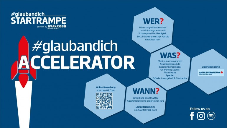 Mit dem neuen #glaubandich Accelerator möchte die Sparkasse OÖ Gründer:innen in der Startphase unter die Arme greifen. Im Programm soll es standardisierte und doch individuell angepasste Inputs geben.